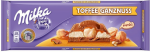 Pyszna czekolada z alpejskiego mleka z nadzieniem mlecznym o smaku karmelowym (32%), z nadzieniem karmelowym (10%) i całymi orzechami laskowymi. Doskonały dodatek do kawy lub herbaty.