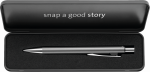 - Długopis zapakowany jest w eleganckie metalowe etui oraz kartonik zabezpieczający.