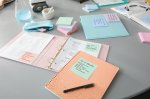 - Zastosowana wiosenna paleta pastelowych kolorów  (Świeża Mięta, Optymistyczny Różowy, Kanarkowo Żółty, Granatowy) ożywi wnętrze każdego biura a także przykuje uwagę do zapisanych informacji.