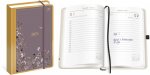 - Wyposażony w praktyczne dodatki: tasiemkę do zaznaczania strony i pętelkę na długopis.