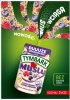 przeciery z: jabłek (35 %), bananów (28 %) i malin (11%), soki z zagęszczonych soków z: jabłek i aronii (8 %), kasza manna z pszenicy (6 %), sok jagodowy z zagęszczonego soku (2 %), płatki owsiane błyskawiczne (2 %)
