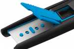 - Proces wymany ostrza jest szybk i łatwy. Aby otworzyć rękojeść należy po prostu wcisnąć przycisk wymiany ostrza i pociągnąć. Pokrywa suwaka automatycznie otworzy się i ostrze będzie gotowe do wymiany.