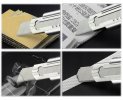 - Nożyk wyposażony w twarde ostrze ze stali węglowej. Szerokość ostrza: 18 mm, długość : 100 mm, grubość: 0,4 mm. 8 segmentów do łamania (jeżeli szpic się stępi) - aby zawsze pracować ostrym narzędziem.