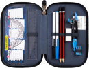 • Zawartość: 18 kredek szkolnych, 9 cienkopisów, 9 flamastrów, cyrkiel, temperówka, gumka do ścierania, 2 ołówki, 2 długopisy, linijka, ekierka, kątomierz.