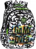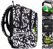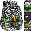 Szkolny plecak z bocznymi kieszeniami na bidon, wzmocnionym spodem oraz regulowanym pasem piersiowym.