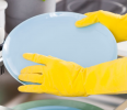 - Rękawice są wyjątkowo wytrzymałe i odporne na uszkodzenia – nie rwą się nawet podczas stosowania silnych detergentów.