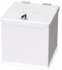 Skarbona z białej plexi z otworem wrzutowym w wieku, do zbierania pieniędzy, głosów wyborczych, ankiet itp.