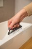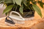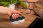 Szczotka typu żelazko, posiada wygodny uchwyt i twarde włosie.  Rączka ze specjalnym oparciem dla kciuka jest dodatkowym atutem i  przyczynia się do większej wygody sprzątania. Dzięki temu nie wyślizgnie  się z rąk zmoczona wodą.
