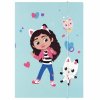 - Teczka jest lakierowana, dzięki temu bardziej trwała i ozdobiona kolorową grafiką z postacią Gabby’s Dollhouse (Koci Domek Gabi).